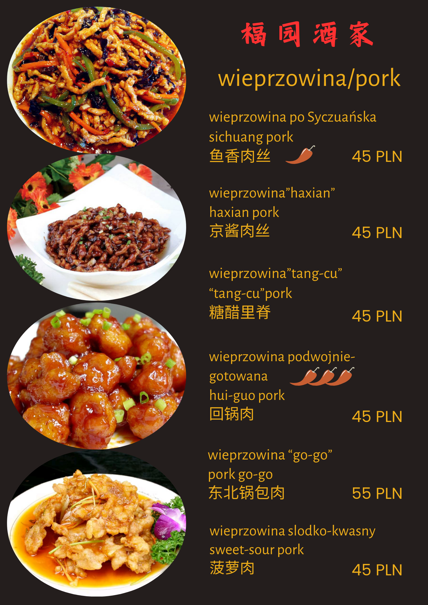 W bogatym menu restauracji z pewnością każdy znajdzie coś dla siebie. Od klasycznej kaczki po pekińsku, która jest specjalnością lokalu poprzez autorskie bakłażany w sosie czoskowym po bogaty wybór dań mięsnych.